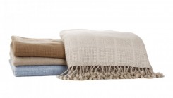 Crafted on handlooms at our workshop in Kathmandu from ultra-soft Mongolian cashmere from the Himalayan goat, these basket weave throws and blankets have an exquisite soft hand feel and are the perfect accessory to snuggle up with at home. You can custom order these in any of the 160 colours available and they can be finished with different types of tassels or trims. They are dyed in azo-free, eco-friendly and colour fast dyes. Also available in cashmere/ wool blend and wool. Because of the hand-loomed nature of these products, each is one-of-a-kind and completely unique. There are slight variations in colors and patterns.